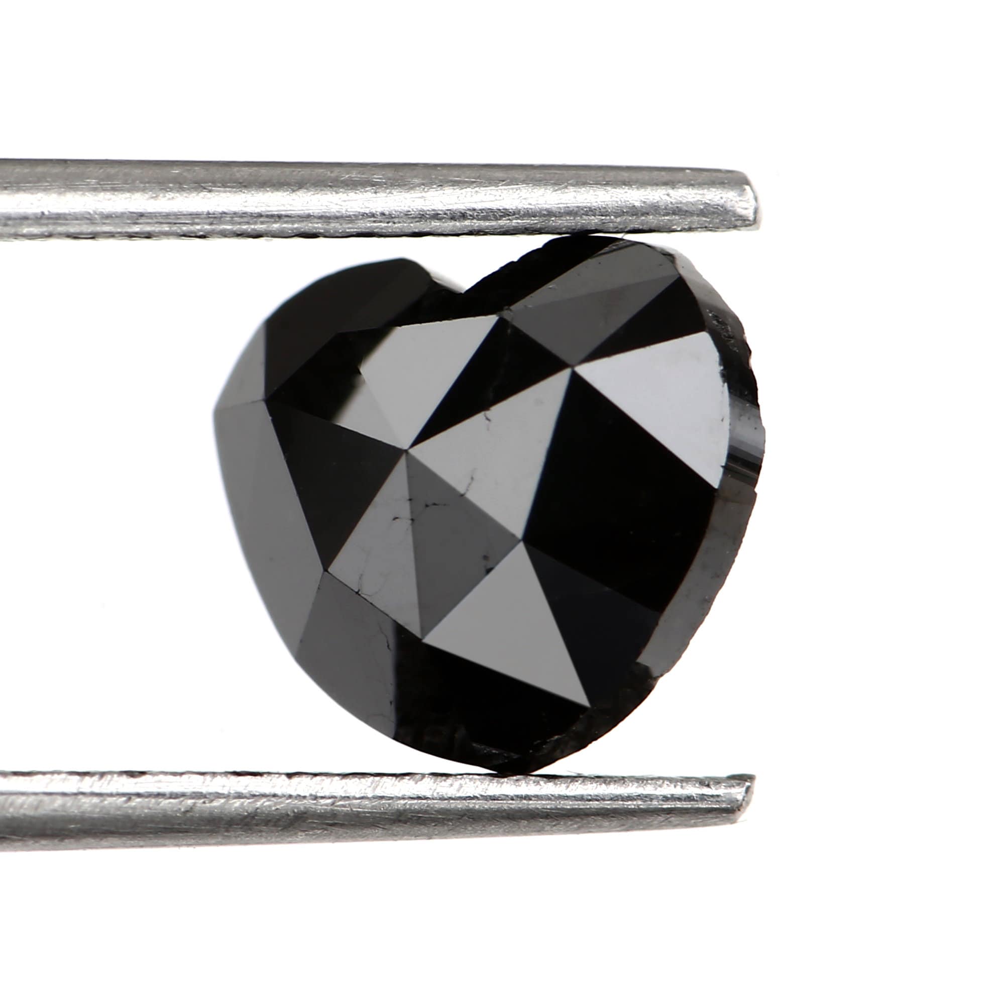 1.80 ct Natural Heart black rose cut black diamond AAA jet black opaque diamond heart shape fancy diamond for valentine promise ring @ TCW : 1.80 Carat @ Measurement : 8.20×7.50×3.15mm