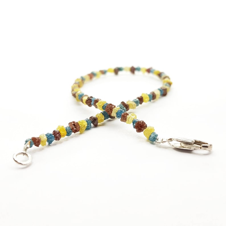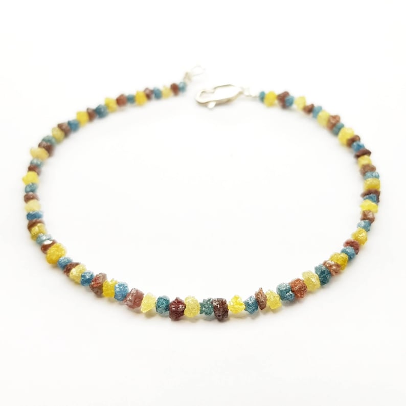 8.00 Carat Rough Diamond ! Natural Multi Color Raw Uncut Diamond Beads 6.50″ Bracelet Chain Wt Silver Clasp ! Rough Diamond ! Loose Diamond