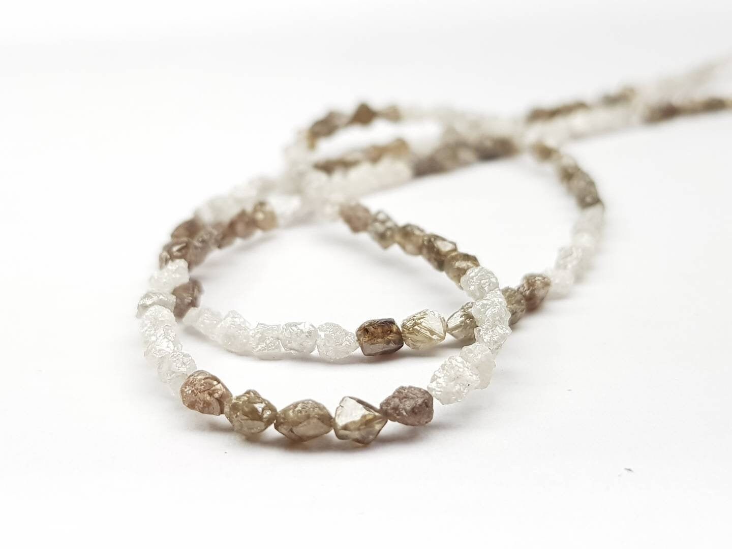 20.00 Ct Natural White & Brown Color Diamond Beads 16″ Strand Necklace .Silver Clasp! Fancy Color Long Drilled Diamond Beads ! Loose Diamond