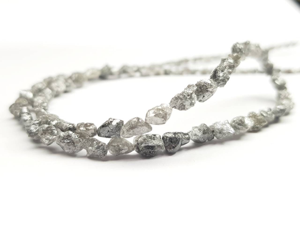 34.05 Ct Natural Gray Rough Diamond Beads ! Natural Long Drilled Diamond Beads ! Natural Diamond Necklace With Silver Clasp ! Gift For Her