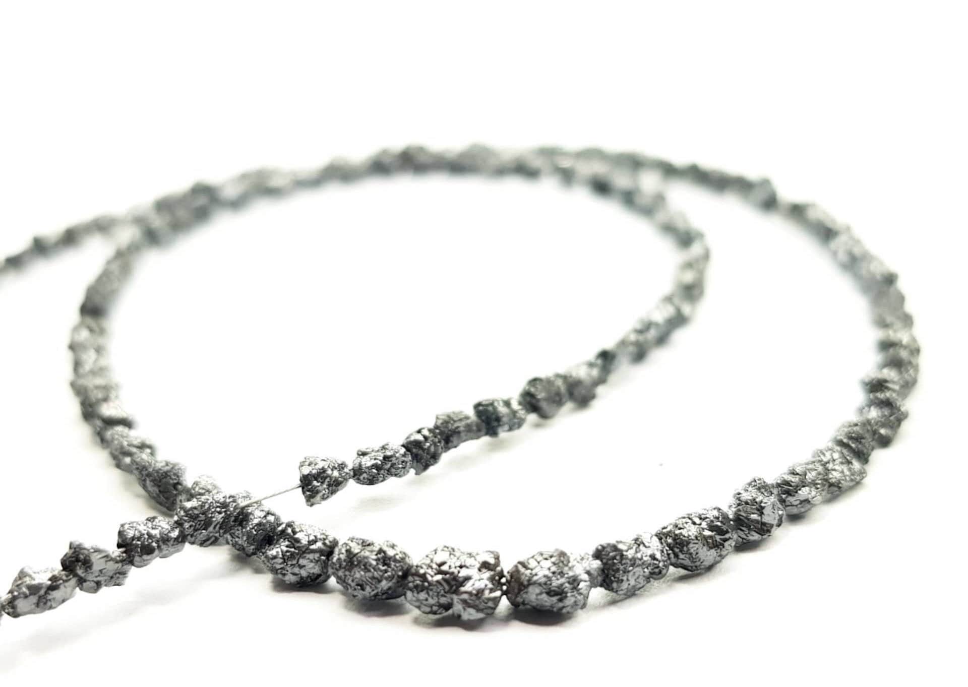Rough Diamond Beads ! 20.00 Cts Natural Black Rough Uncut Diamond Beads 16″ Strand Necklace Chain Wt Silver Clasp, Sparkling Loose Diamond