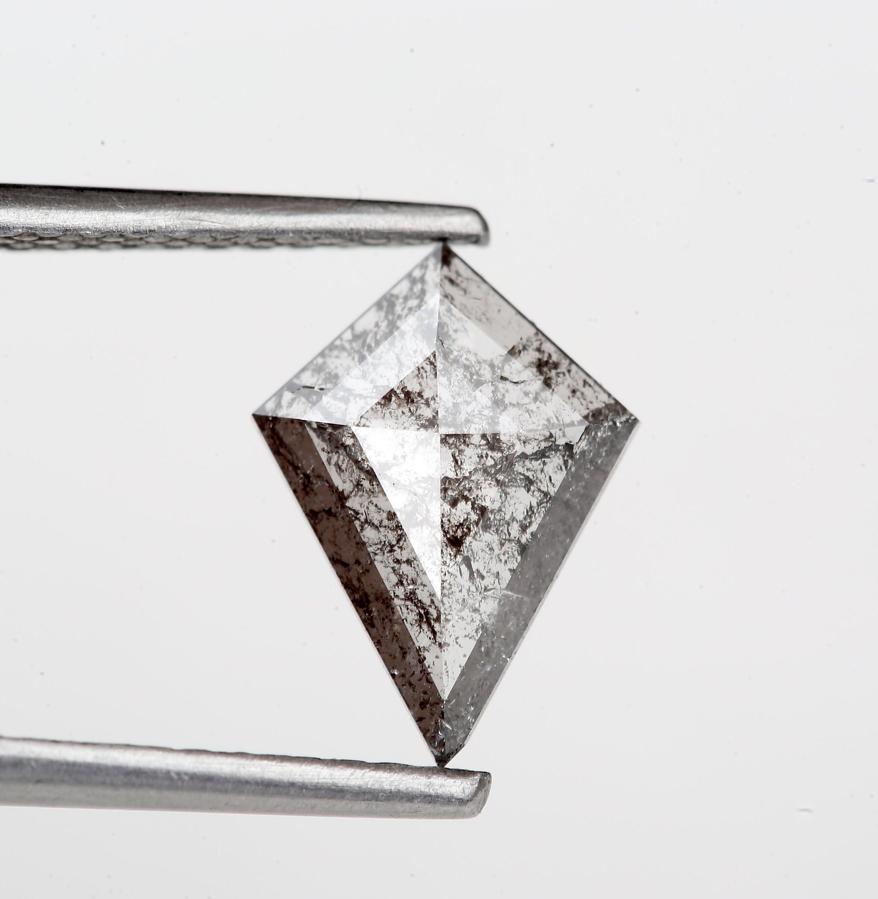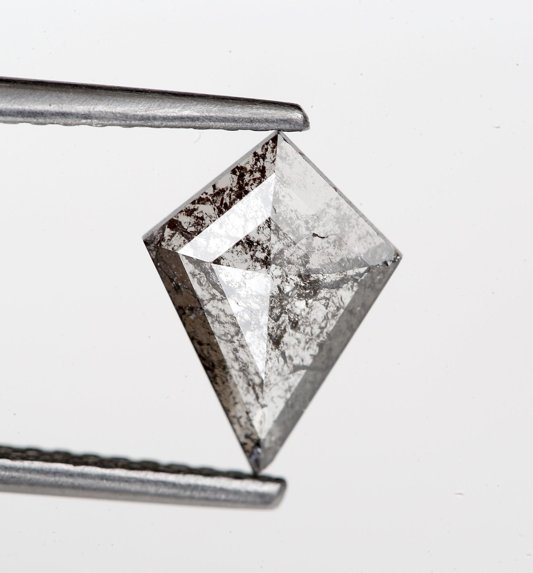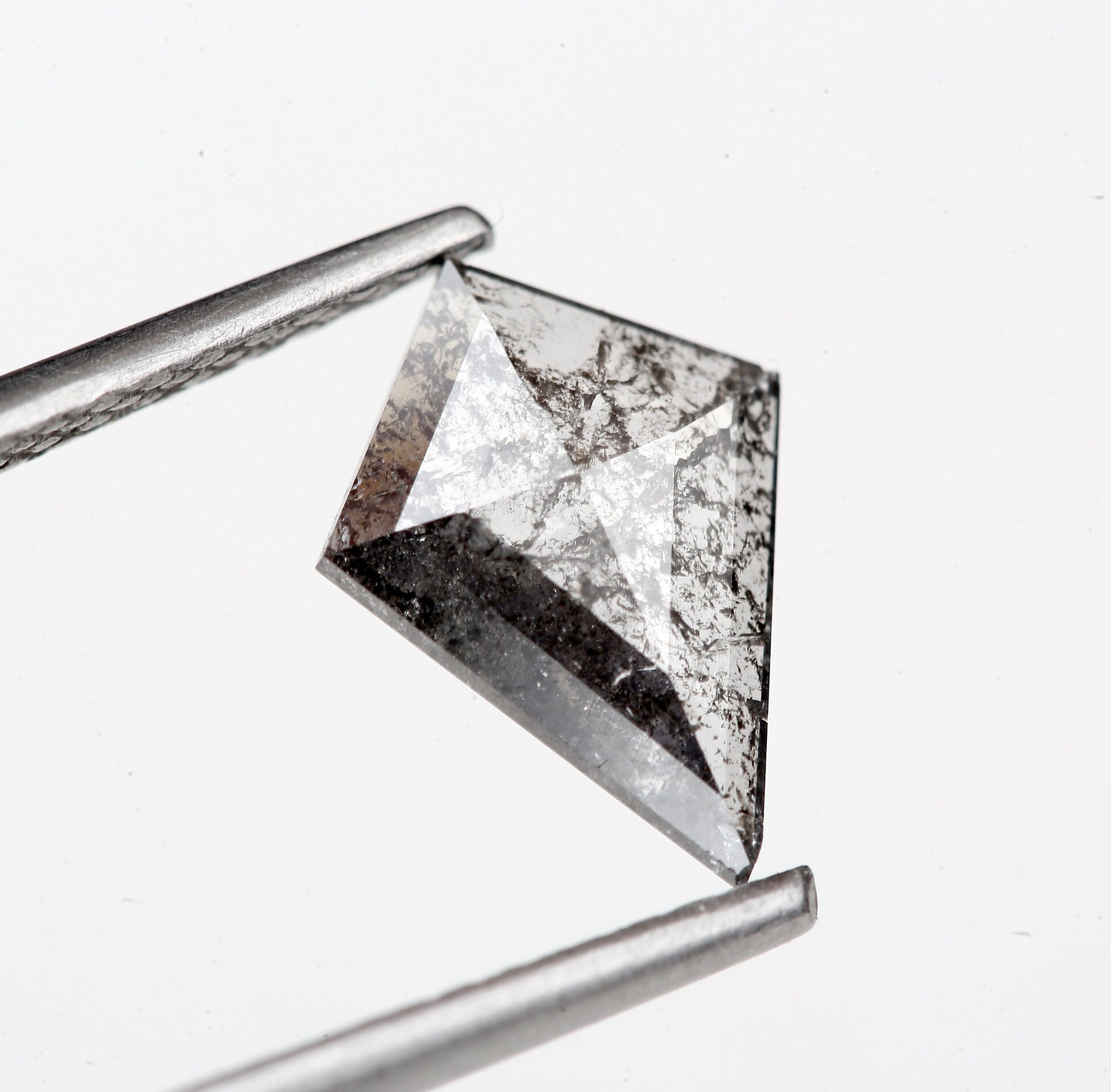 0.87 ct salt and pepper kite cut grey rose cut galaxy diamond, fancy step cut diamond kite shape unique diamond for alternative wedding ring