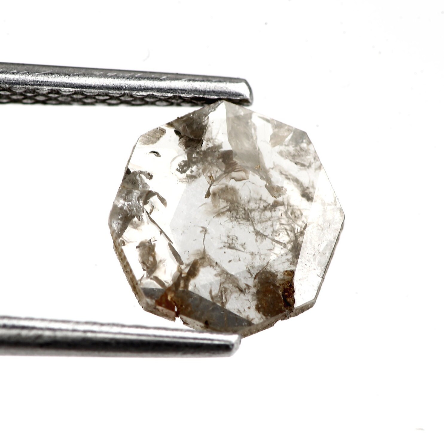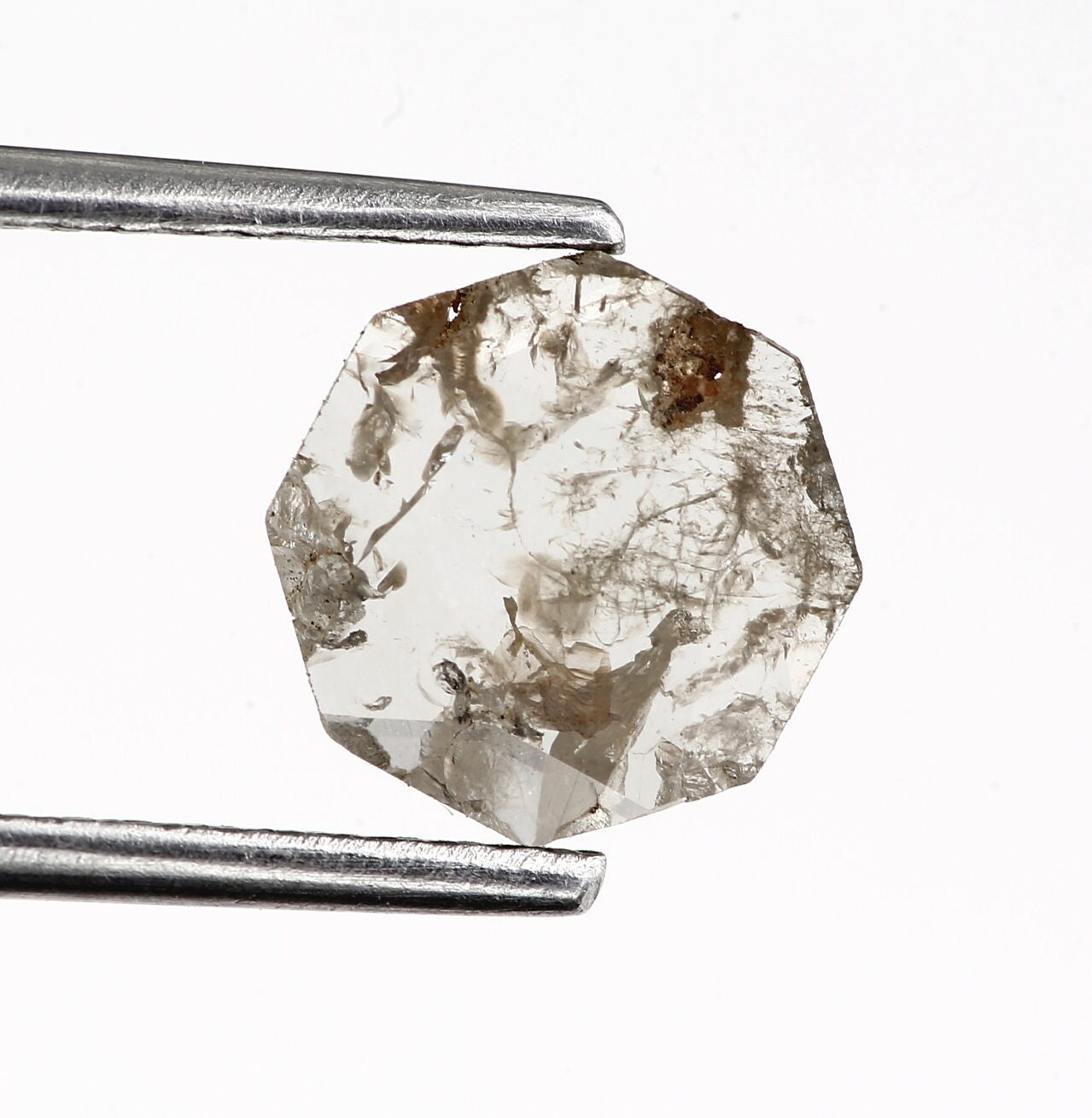 0.90 ct antique octahedron salt and pepper diamond slice natural antique uncut polki diamond slice faceted rose cut slice